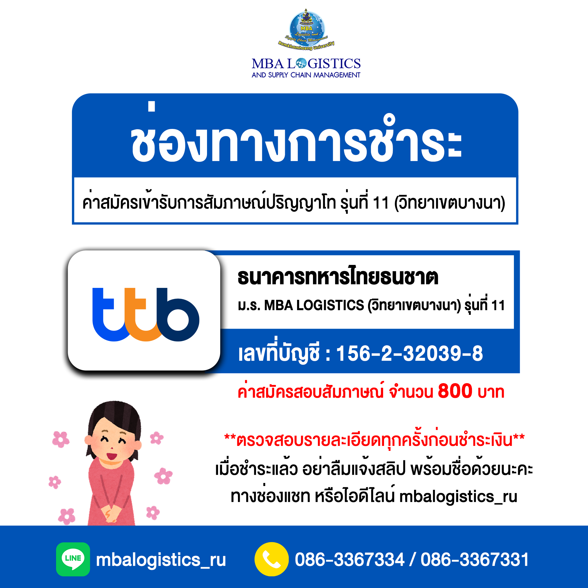 - ติดต่อชำระค่าสมัครที่ Line โครงการฯ : mbalogistics_ru